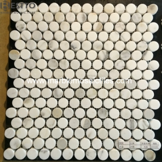 This Calacatta mosaic mixed with different sizes of penny round pieces, it looks special.