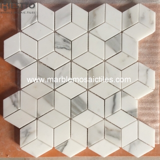 Custom made rhombus mosaic by Calacatta according to project's requirements, nice slection color, uniform veins!