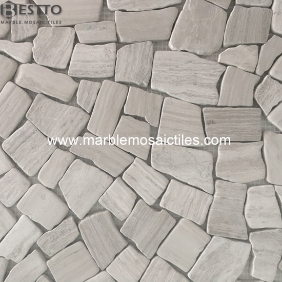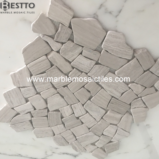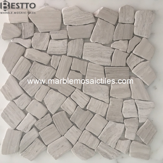 Product: White wood marble Crazy mix tumbled mosaic tile